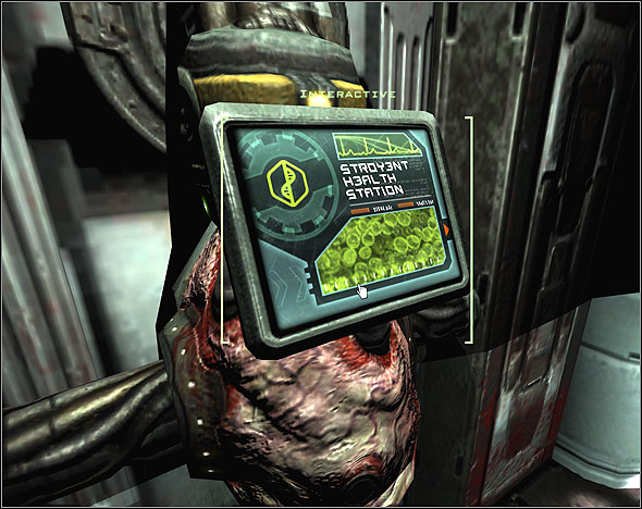 - At the game's beginning, you'll notice that in Stroggos' bases are plenty of similar devices to the ones, showed on the screenshot above. This are medical positions, which operates identically how the ones from Doom 3 or the Half-Life series. The player can use them after turning into Strogg (after Strogg Medical Facilities level). Every station has the specific number of health points and you can't use it ad infinitum. The 'depleted' message will inform you about station's useless.