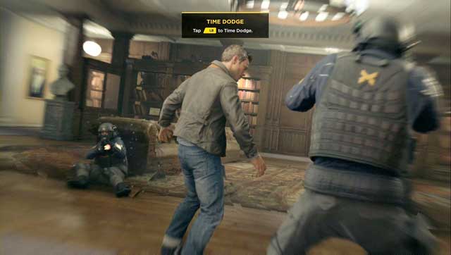 Once again you are at the university. Approach the board, activate Time Vision, and go upstairs. Use Time Dodge to run faster, dodge bullets and charge into opponents, and thus eliminate them. It may be especially useful, as guards will use grenades from now on.