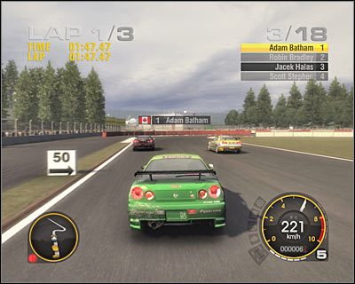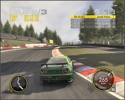 You should end up heading towards the finish line. Maintain maximum speed in this area (which is about 225km/h). The final chicane is a very difficult one (screen). You will have to go through it without making even a smallest mistake. Cross the finish line and maintain your lead on the following laps. It shouldn't be a problem, especially since computer drives aren't too aggressive here.