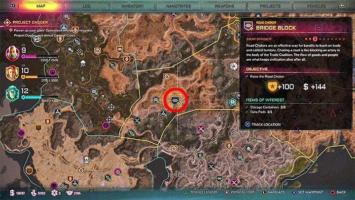 In search of Dumper Truck go to the site specified in the image - Bridge Block. It is located in the Broken Tract region, go to the south-west of Gunbarrel city.