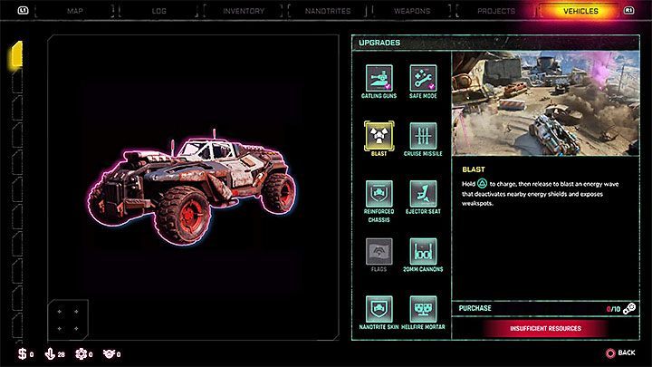An important part of preparations for a meeting with the convoy is to upgrade Phoenix (the default vehicle), although only one of upgrades is mandatory. Here we are talking about improving the Blast, which after charging can shoot a beam of energy. The use of this enhancement will be required to destroy the convoy leader.