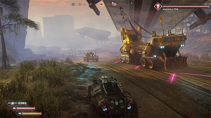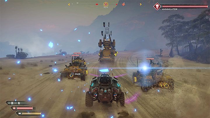 In some enemy vehicles, you can get information that they are protected by Energy Shields. To solve this problem, stop shooting and help yourself with the nitro to get closer to these vehicles. Hold the Blast charge button (triangle on PS4 or Y on Xbox One) and release a bundle of power that will get rid enemy's shields. Only from now on, use the on-board weapons.