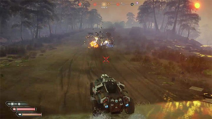 In the process of pursuing the convoy keep in mind that vehicles will leave some traps on the road (example in the picture). A universal way to deal with this problem is to drive down to the side of the road so you can bypass all the traps. In addition, with this method, the convoy will not be able to escape from the hero.