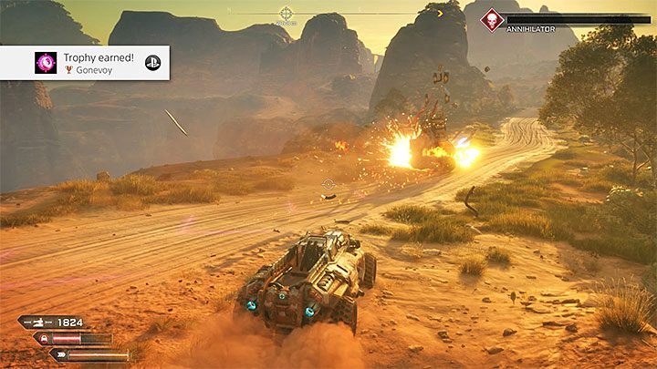 On this page of our trophy guide to RAGE 2 we have described the bronze trophy - Gonevoy. Achievement is awarded for killing one leader of a convoy. Below you will find a complete set of information on how to find convoys, how to prepare for an attack on the convoy, how to exclude weaker vehicles from the convoy and how to deal with the leader of the convoy.