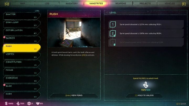Each of the 11 available skills can be developed further. This section of the Guide to Rage 2 will tell you how to unlock new skill levels and how to improve nanotrite skills.