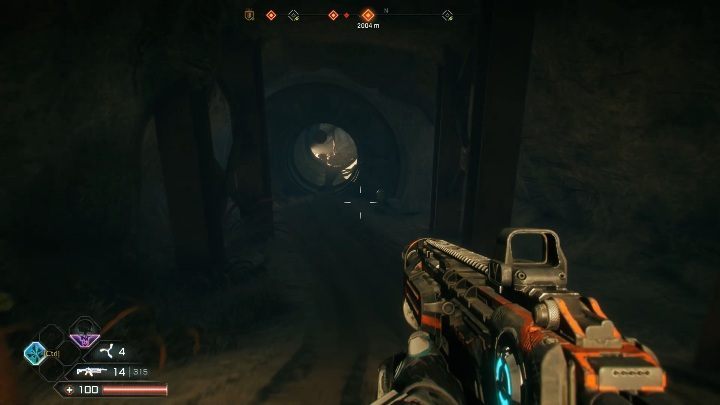 To get to The Ruined Shaft you need to jump into it. Your next task will be to move along the tunnels. If you encounter an enemy, shoot him at will.