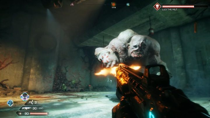 At the end of the location you will find Lug The Nut. It's a big monster trying to kill you. Aim at his head and you will cause him huge damage. Defeat the enemy.