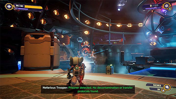 Despite receiving a new mission objective related to Ratchet, you don't have to rush. Eliminate the from this room and follow a path that involves pulling yourself to the gaps.