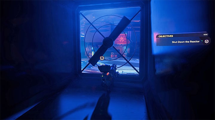 You will find yourself on a shelf next to the room with the reactor control console. In the place from the picture, use a white weapon to destroy the fan grille.