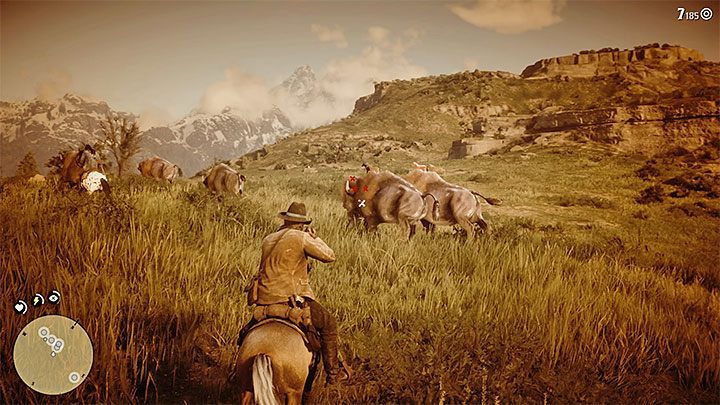 After reaching the place where the buffaloes are staying, use any weapon (e.g. rifle) to kill one of them. It's worth helping yourself with your Dead Eye to score a few hits and be sure that the buffalo will be killed. Get off the horse and skin the bison.