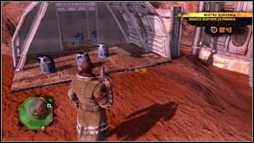 Take hydrogen tank #1 and now you will have two choices. The first one is to throw the barrel, but is not very accurate. The second one is to move tanks to the marked area and shoot them with your pistol from the secure distance #2.