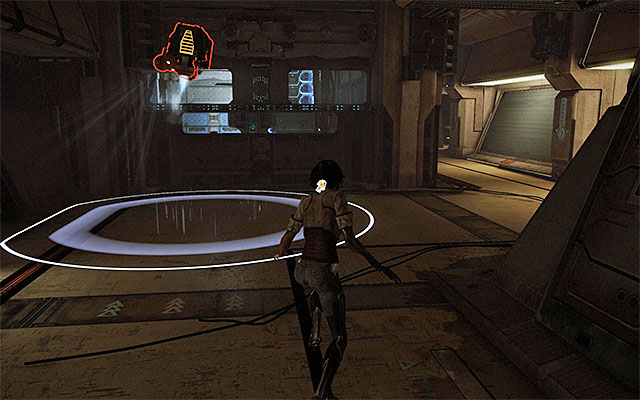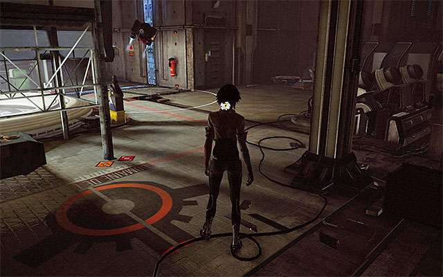 The boost is on the floor and you get the opportunity to get it after the ride inside the holding cell, i.e. after you dodge the Brain Drainer. Take to the exploration of the area where the holding cell stopped and turn your attention to the corner guarded by the combat drone (screenshot 1). The boost is in a dimly-lit spot. (screenshot 2).