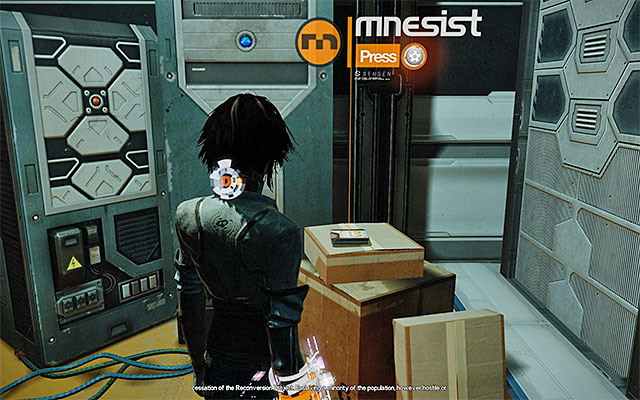 The memory is on the boxes and you can find it soon after you collect the Pick-Socket from the chest with Bad request's belongings. You need to reach the administration room with several robots working there (screenshot 1) and take the passage marked as the Trauma Room. The memory is at the end of the corridor (screenshot 2).