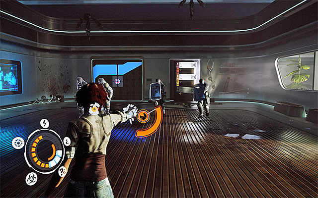 Only now, and take all precautions, can you return to the bar and go towards the door to the right, l the ones that captain Trace made away through. Enter the next location, where you will have to fight a big battle.