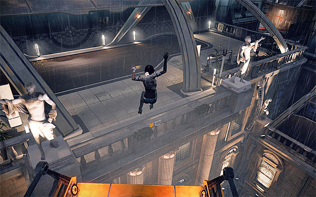 You can now turn to the second Crane control and interact with it. Wait for the crane to rotate and go towards the VIP entrance that you can see in the distance. Leap towards the upper balcony on the Memorize headquarters which will start a cutscene.