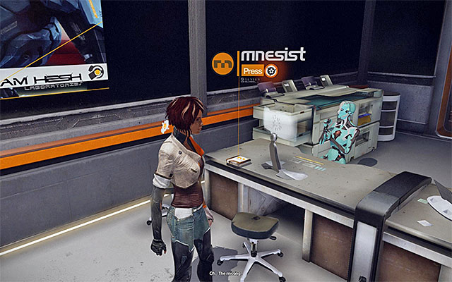 Right after you take the ladder, go towards the nearest door to the Security Posts. After you walk into the room, make sure that you have examined all of the desks because, on one of them, there is a Mnesist Memory shown in the above screenshot.