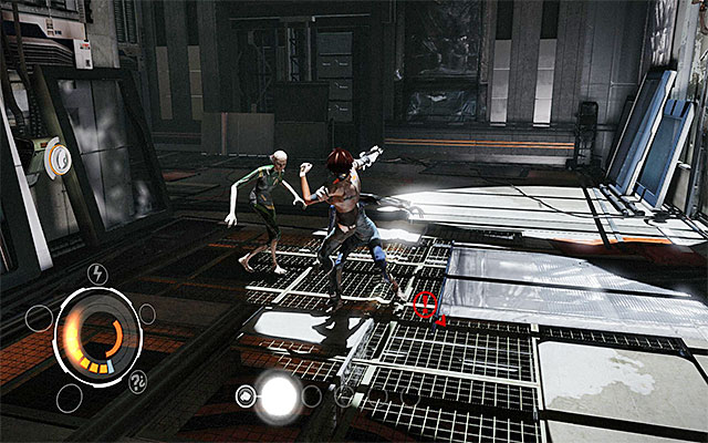 Variant two assumes that you aim your Spammer at the turbine control. Each time you hit the device, you will turn on the lights for a part of this area. This will allow you to locate the mutants. Regardless of which strategy you adopt, do not forget to monitor Nilin's health bar and to use the second one of the available special moves (Sensen Fury).