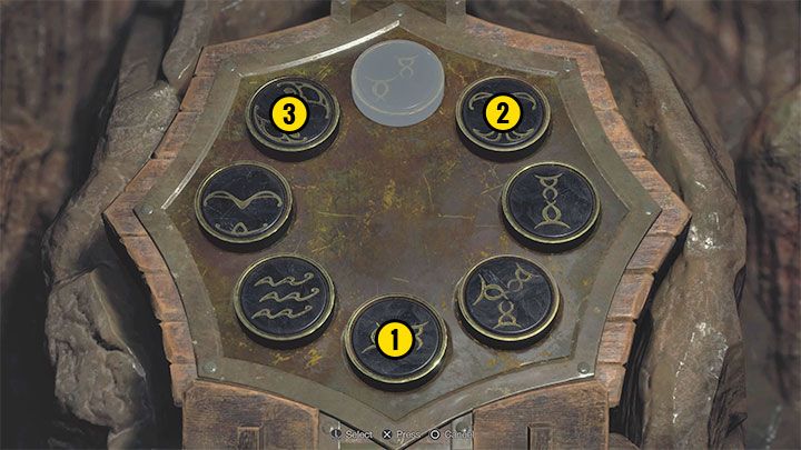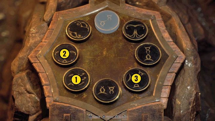 There are numerous enemies guarding the way to this area. Your destination is the Stone Dais - you must select three correct symbols.