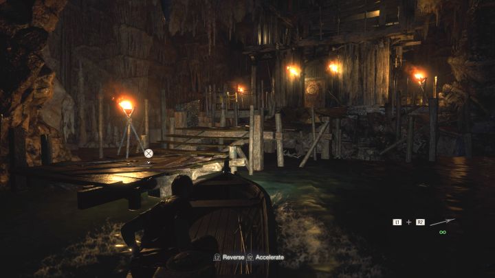 In the next part of the cave you'll find a mural showing a map of the lake - you'll learn you must visit the Large Cave Shrine (southwestern part of the lake) and the Small Cave Shrine (northeastern part of the lake). You can access them on a boat - swim across the lake and reach the small docks near the puzzle locations.