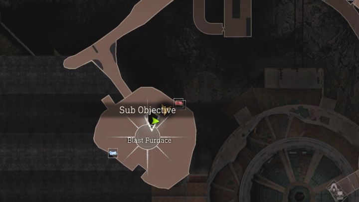 Quickly reach the lever and hold down the interaction button. You must open the large hatch in the center of Blast Furnace.