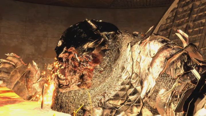 On this page of the guide to Resident Evil 4 Remake, you will learn how to defeat Dos Gigantes - 2 giants from Blast Furnace in chapter 11. The page explains how to attack the parasites, how to avoid the attacks of both El Gigante and how to drop the armored giant into the lava.