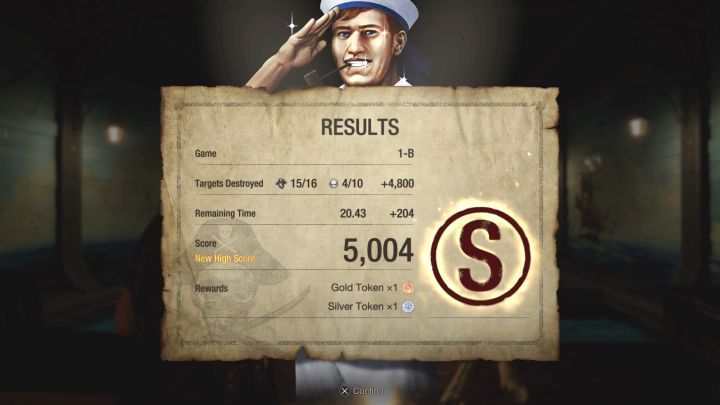 If you want to get an S rank, you must, in addition to accurate shots, fulfill the assumptions of Bonus Condition. These can include, for example, hitting all the pirates in a given game.