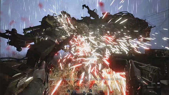 While you're busy shooting at the boss, you must of course be mindful of his attacks. Make full use of the ability to guard activated by holding down the L1/LB button - it also activates a chainsaw attack. You can block the boss's chainsaw attacks in this way.