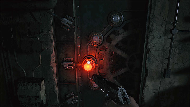 Ultimately, you must reach the door showcased in the picture with as many as five electronic locks. Destroying them will allow you to progress. If you are being chased by the Soldat, you can destroy locks "in installments" or neutralize them with a pistol, which is faster than using a knife.