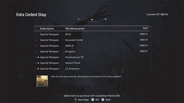 Return to the main menu and open Extra Content Shop in the Bonuses tab. The first item is Extra Game - The Mercenaries. It costs 10 CP (Completion Points).