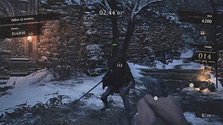 The Mercenaries Mode focuses entirely on combat. It doesn't have any storyline. All battles take place in locations known from the campaign. Initially, only the Village is available and you have to unlock subsequent stages by playing well enough. For example, in order to unlock the Castle, you must achieve a final rank of at least A in the village (earn at least 420,000 points).