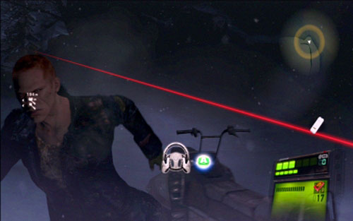 Get rid of the mutant on the scooter. Now you can use the vehicle and drive to the second data fragment. Pick it up and run to the bridge leading towards the last data fragment, ignoring the enemies.