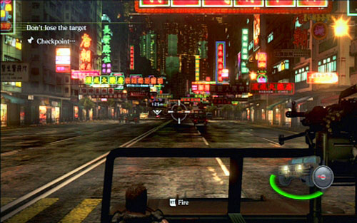 The chase looks pretty the same all the time, except for a brief change in the underground parking lot. You'll encounter there a large blockade built by enemies. Destroy it quickly with machine gun and grenade launcher. Once the chase ends, the level is complete.