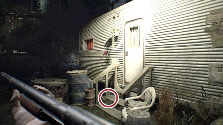The seventh statuette can be found in the yard, at the entrance to the trailer - or, to be more specific, under the stairs leading to the trailer.