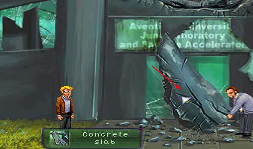 Drag the Concrete slab to STM and talk to Bennet about the building. When he attempts to move the slab blocking the way, click LMB on the Concrete slab to help him. You'll move the slab together. Unfortunately, you won't be able to go through the main door.