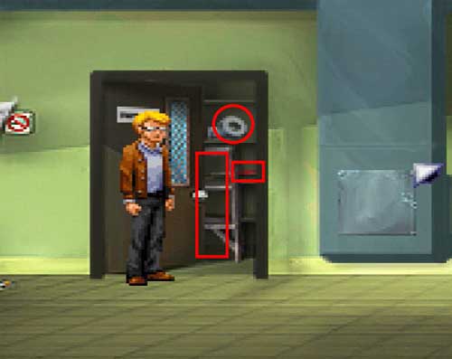 Talk to the Janitor. The conversation can be aborted if you get bored with the story. Afterwards, head for the building.