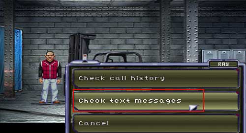 When Ray is down, take control over him and click on the Resonance device A from INV. Then, choose Check text messages. Cellphone number will appear in LTM. Leave the Warehouse and go back to the Police Administration.