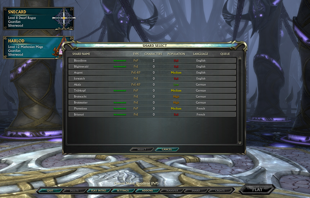 After you have logged in, you will see an option to choose a Shard (Server).