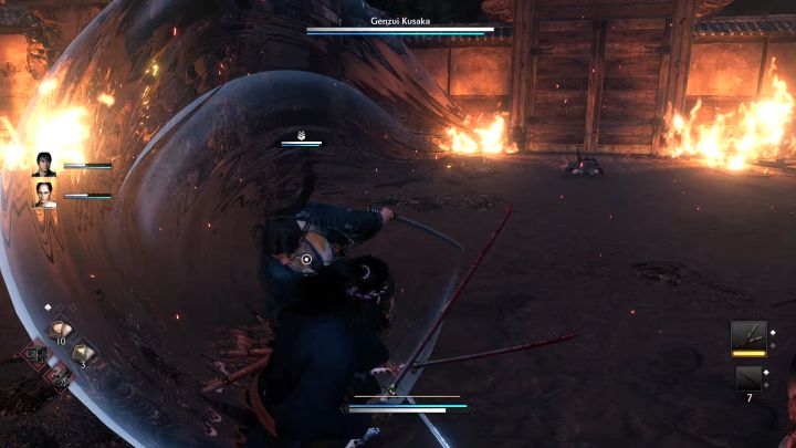 - Kusaka can also set his weapons on fire. The result of this is not only new moves, but also the risk of receiving fire damage, which can gradually deplete your health points.
