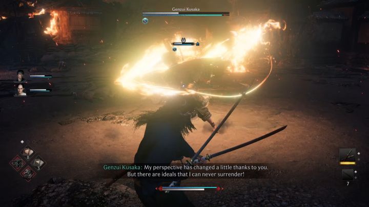- Genzui Kusaka can confront you again as a boss only if in the final part of Act 2 in Kyoto you chose the faction supporting the shogunate (purple dialogue option).