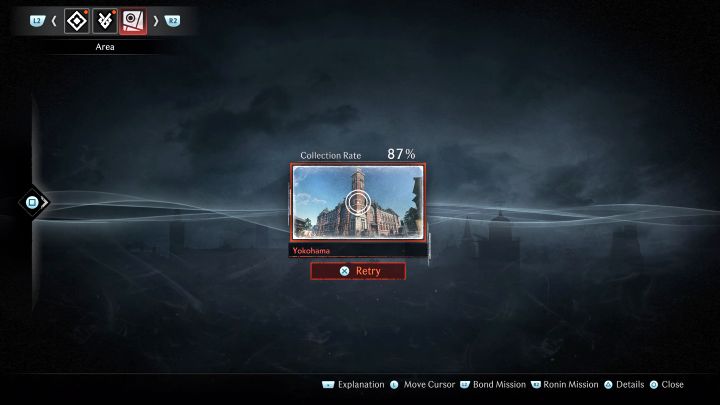 - Returning to regions - go to the last tab. There you will find Yokohama, along with information about the progress in completing this land (side quests, activities, and secrets).