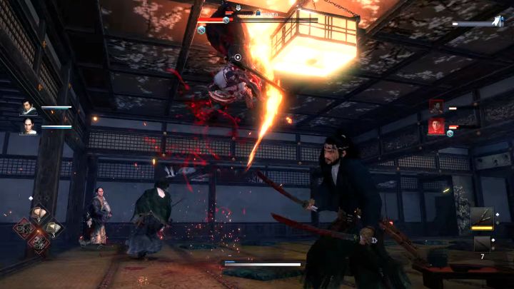 If upon arriving in Kyoto in Rise of the Ronin you choose the faction of the shogunate supporters (purple color) and start The Ikeda Inn Incident, you may encounter these two bosses. This page of the guide describes the confrontation with the bosses Teizo Miyabe and Kogoro Katsura on the first floor of the inn. You will learn, among other things, how to react to attacks using a flamethrower used by Teizo.
