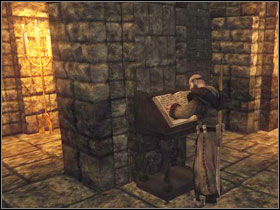 After getting the rune (destroy magic barrier) from Ursegor's sarcophagus (see Find all the pieces of the Titan Armour), you should talk with Illumar (yellow). You can tell the mage to create the scrolls but you can do it yourself as well (after completing Talk to master Illumar). It's worth choosing the first option, as you will save ingredients ant time (Illumar creates 5 scrolls at a time).