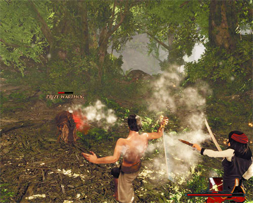 The key is to ask the him to go hunting together. Thompkins won't be too happy about it, but will agree anyway. The hunt will turn out to be pretty modest - the target is a Prize warthog [#2] a few meters away. When the animal is down, the mission will be successfully completed and the hunter will go towards the hut guarded by Gilles [#3].
