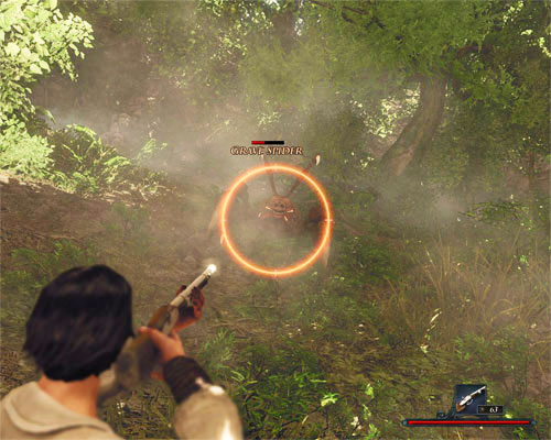 The creature is not only huge, but also very dangerous, which you'll find out soon enough. With Patty at your side, use her to draw its attention away from you, and take your time to attack it from a distance. Close combat is a complete waste of time and healing measures - if you're not expert in melee combat, it will be ages before you succeed. The best solution by far is to attack from a safe distance and run away if the creature comes too close.