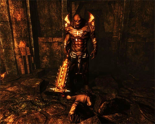 Once you've dealt with it, don't forget to take the Golden head from its corpse; then return to the cave's entrance and find the gate leading to the tomb. You can open the door by placing the idol in the Lock right next to it. Move forward, killing the mild Rats on the way and defeating a Warrior. At the end of the route you'll see a pedestal with an Idol on it. If you lift it, you'll trigger a trap in the corridor. In order to avoid death by a murderous blade, press Space when a proper command appears on the screen.