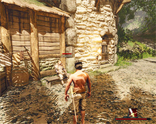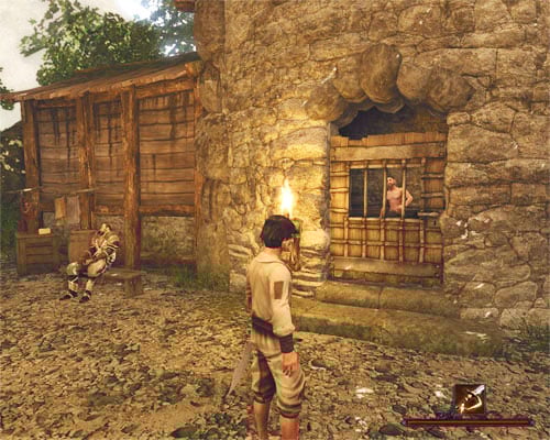 In the north part of Puerto Sacarico there is a not too tall tower in front of which you can find a man named Carter. The building is in fact a prison, and the man its guard. When you approach the solid wooden door, you can see a prisoner in a cell. His name is Largo [#1].