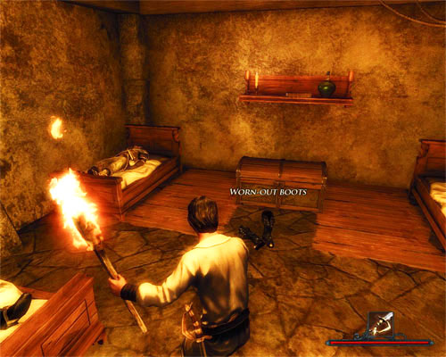 This is a very simple case because Worn-out boots are in one place only - the barracks [#3], situated right next to the governor's villa in Puerto Sacarico. The only problem may be an easy access to the building, as the sleeping room is constantly guarded by a sentry.