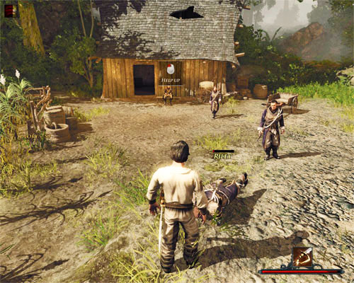 Switch to sneaking and start moving closer to the door, going from the villa's side. Keep close to the wall or you'll be seen by Osorio sitting on a bench. The entrance has to be clear - if the cook notices you, you'll have to repeat the whole operation. Once you're inside, move towards the only chest you see. The boots are right in front of it.