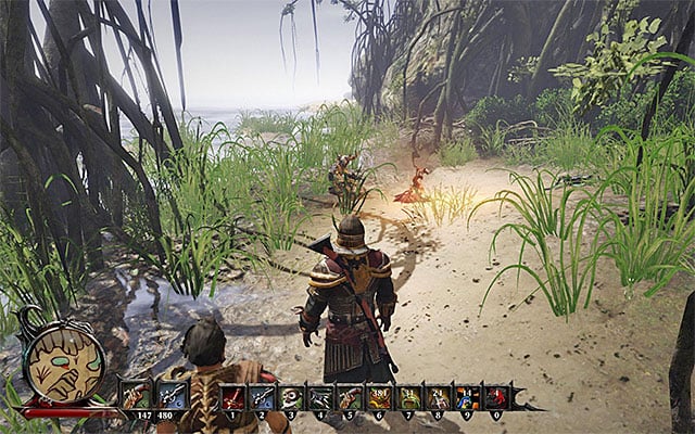 Shax is a friendly creature, balancing between the world of the living and the Underworld. This character can be found near the swamps, in the Southern section of the island (point 27 on the map). During the conversation Shax will ask the Nameless Hero to help him with the retrieval of his belongings, which are held in a chest in the wilderness. If you accept his request, he will temporarily join the party and give the Nameless Hero a Shax's Chest Key.