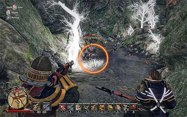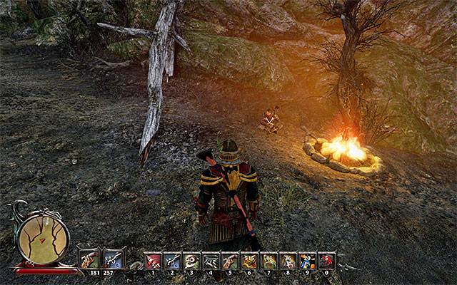 Inquisitor Severin can be found near the mountainous path in the Northern part of the map (point 5 on the map). During the conversation with Severin, you will learn that he is a deserter. You will offer to help the man eliminate ten shadows (monsters) staying around. Confirm that you are ready to start and follow Severin.